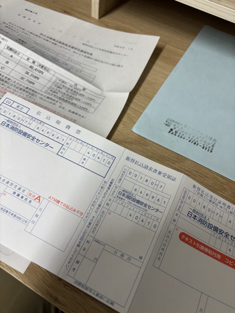 無事に防火対象物点検資格者講習も先程支払い行ってきて
